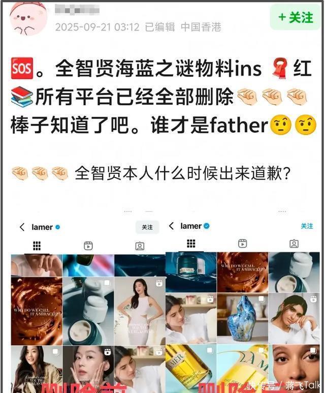 其中海蓝之谜不光删除了中国平台上有关全智贤的全部内容,海外品牌账号一样把全智贤所有物料都清空了,这下也是彻底打了还在盲目给全智贤洗白的人的脸。